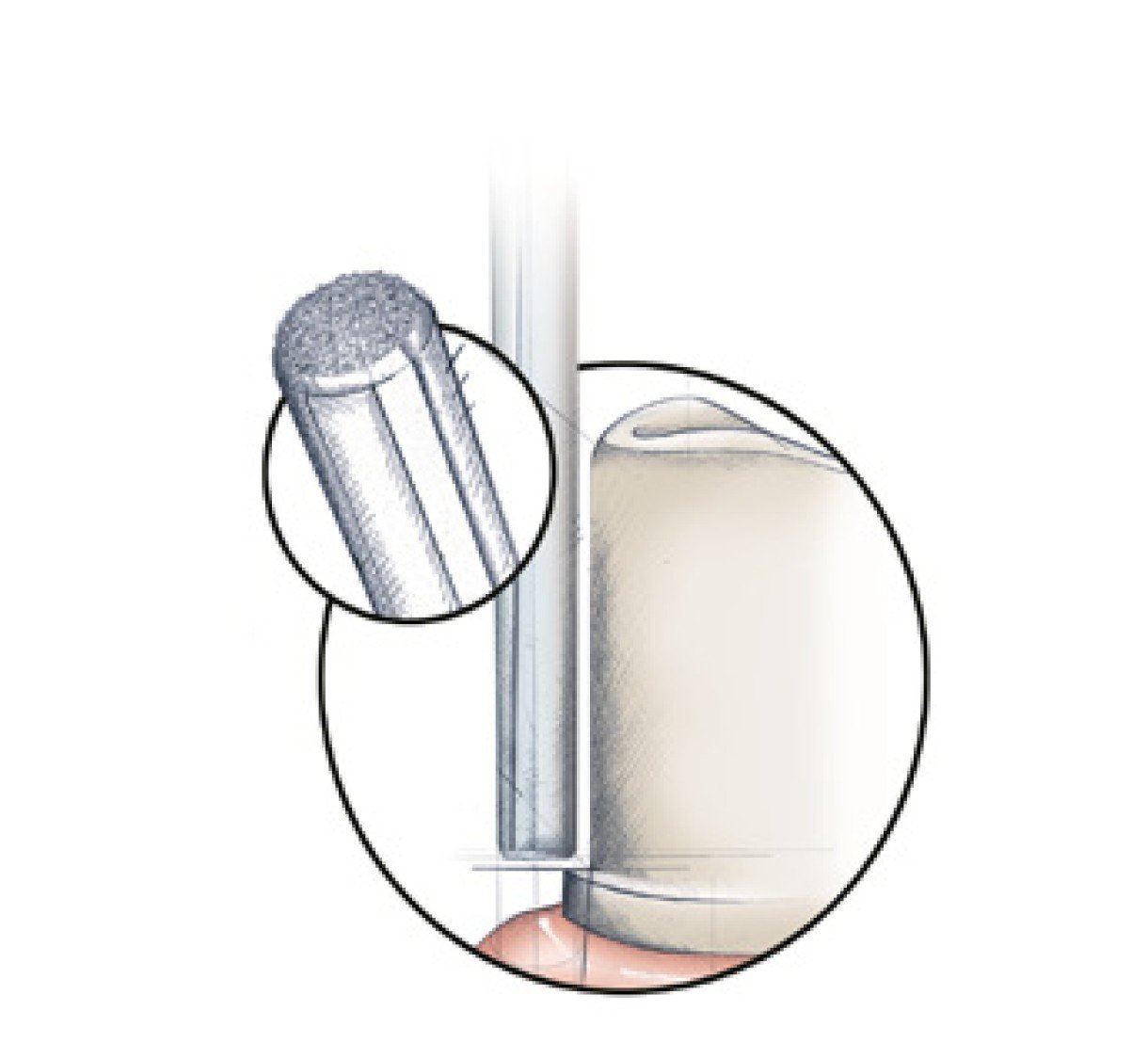 Fresa Dental de Diamante de Refinamiento de Márgen para prótesis, marca WINPARR, el diámetro de la parte activa de la fresa es de 1.6mm y es de grano Medio.